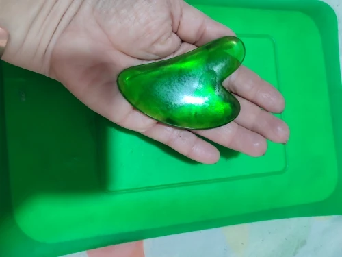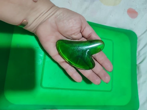 - Tenez la Pierre Gua Sha en position inclinée à 15-30° par rapport à votre peau.